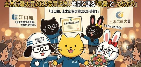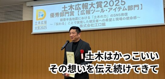 3月16日、東京の土木学会で行われた 土木広報大賞2025 表彰式に、江口組を代