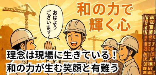 理念に込めた“和の力”への想い 江口組の経営理念は、 「和の力で輝く心が、みんな