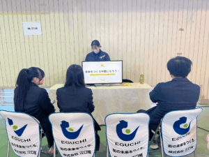 3回の説明のうち、5人の生徒さんが江口組のブースに来てくれました。