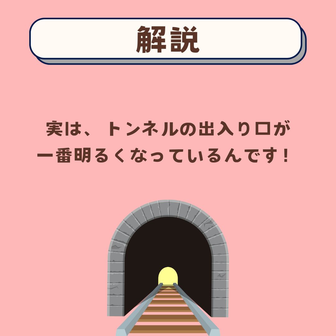 Q.トンネルの入口と内部で明るさを変えている。〇か✖か?