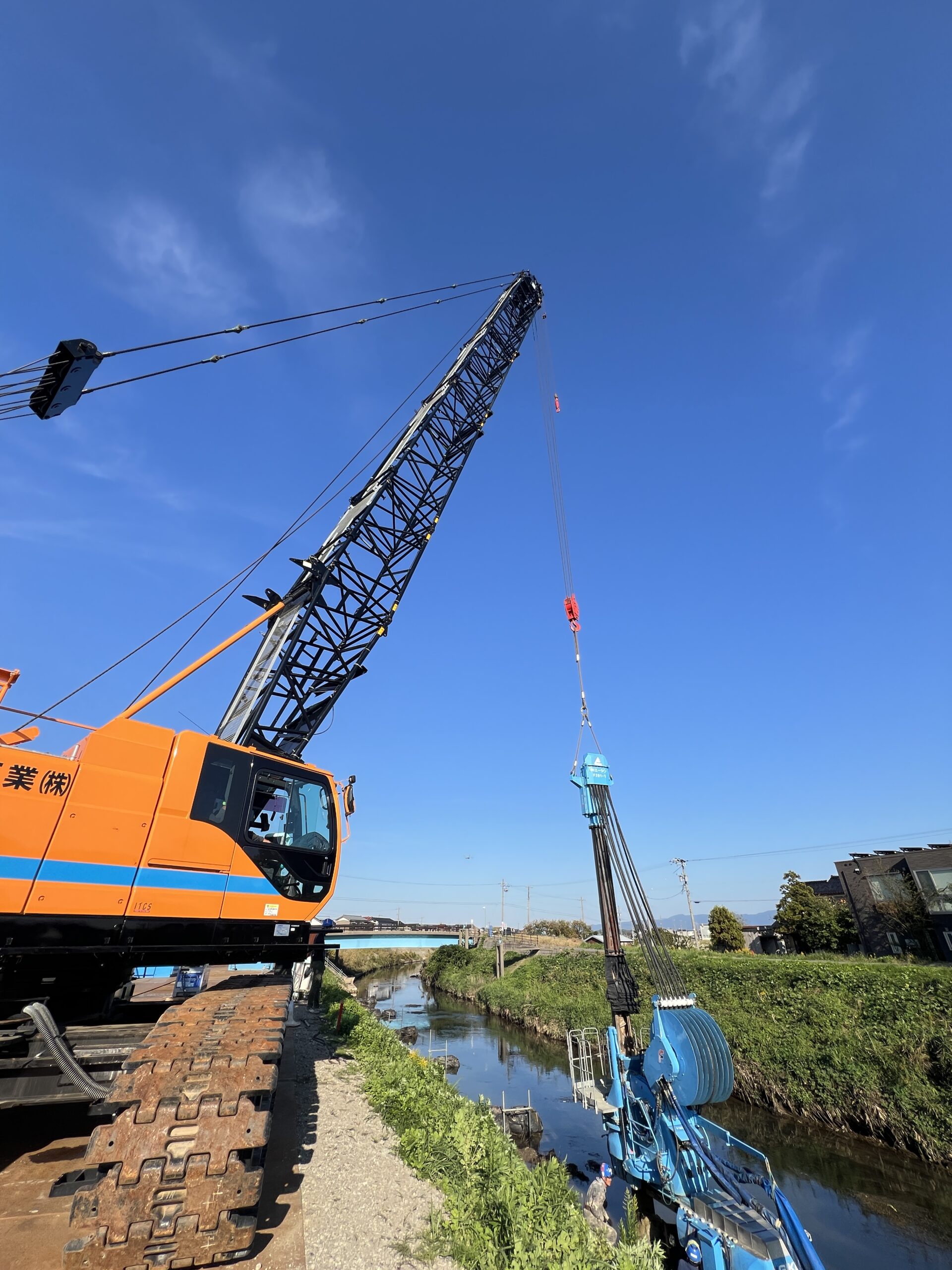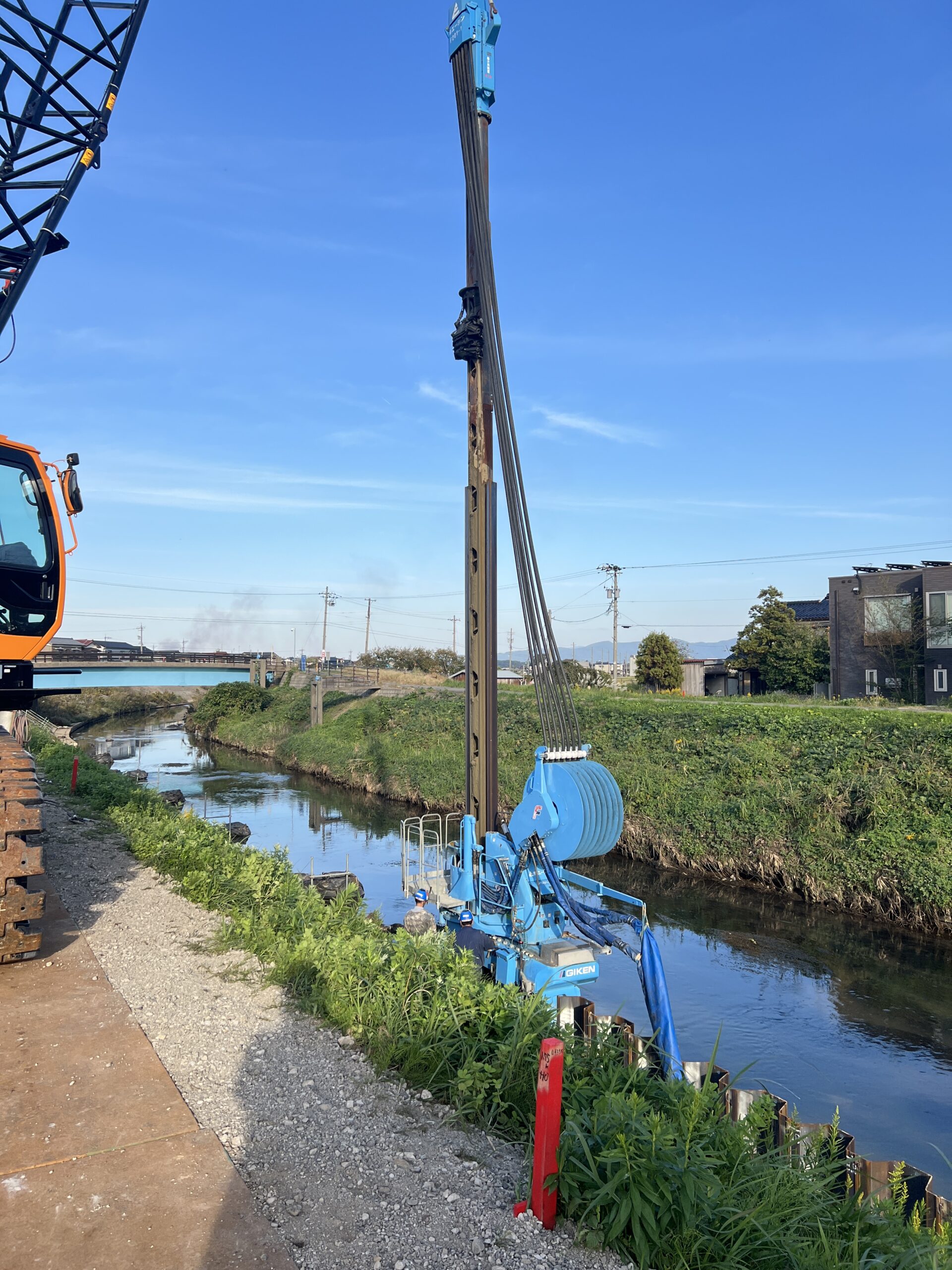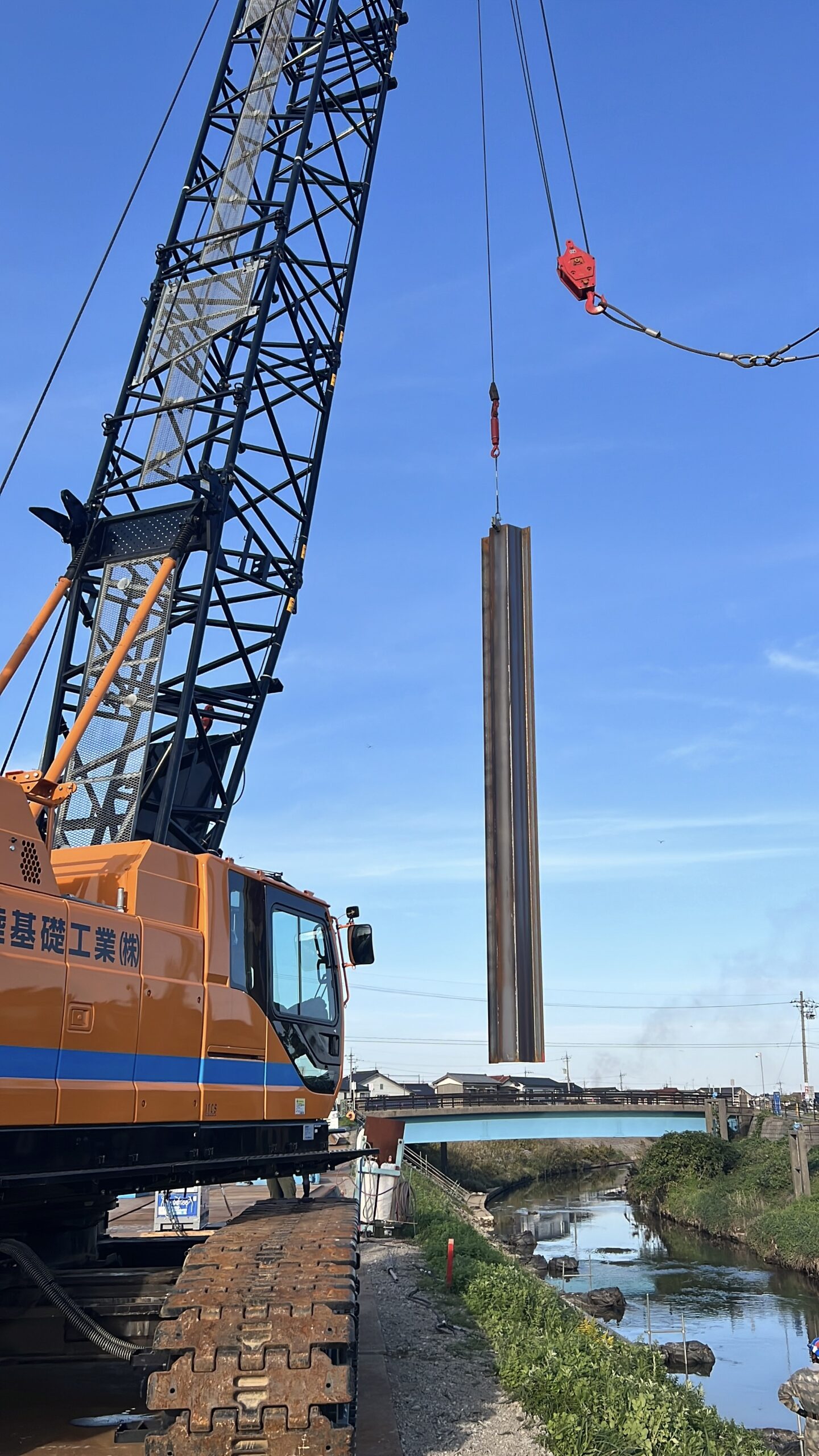 先日、八丁川の工事現場で行われている「矢板打設」の作業を見学してきました!