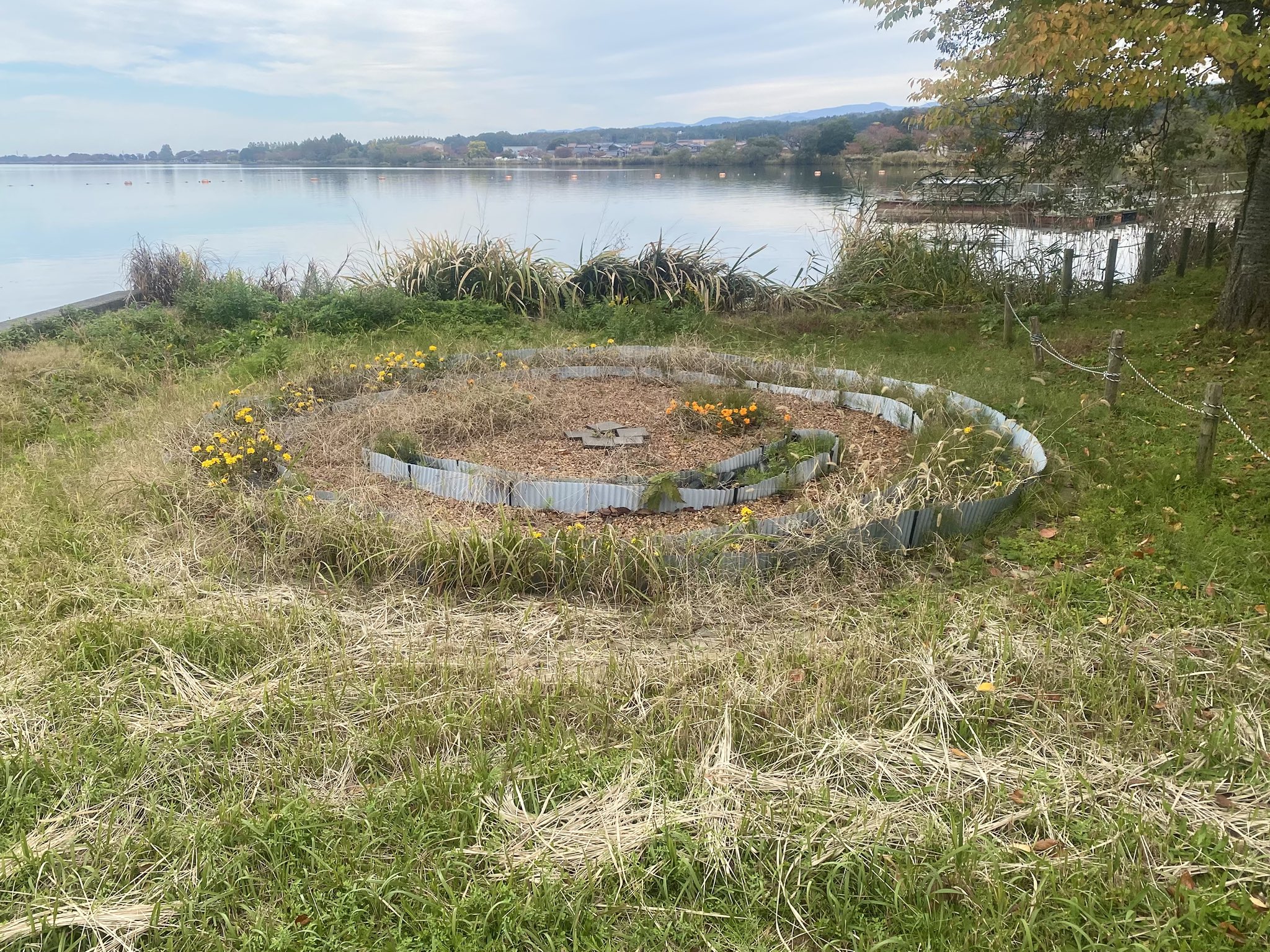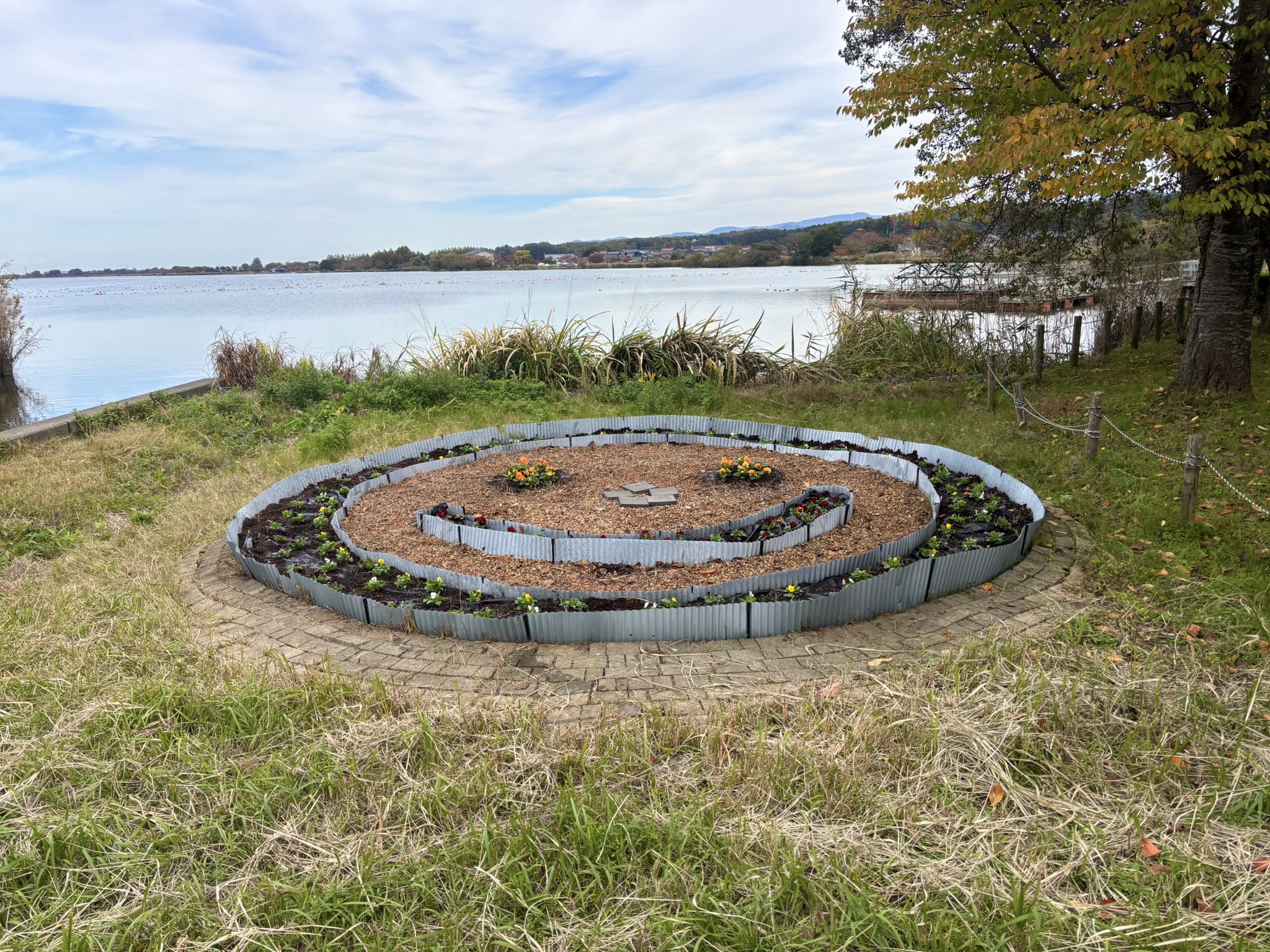 完成したスマイル花壇は色とりどりの花で元気いっぱいになりました^^