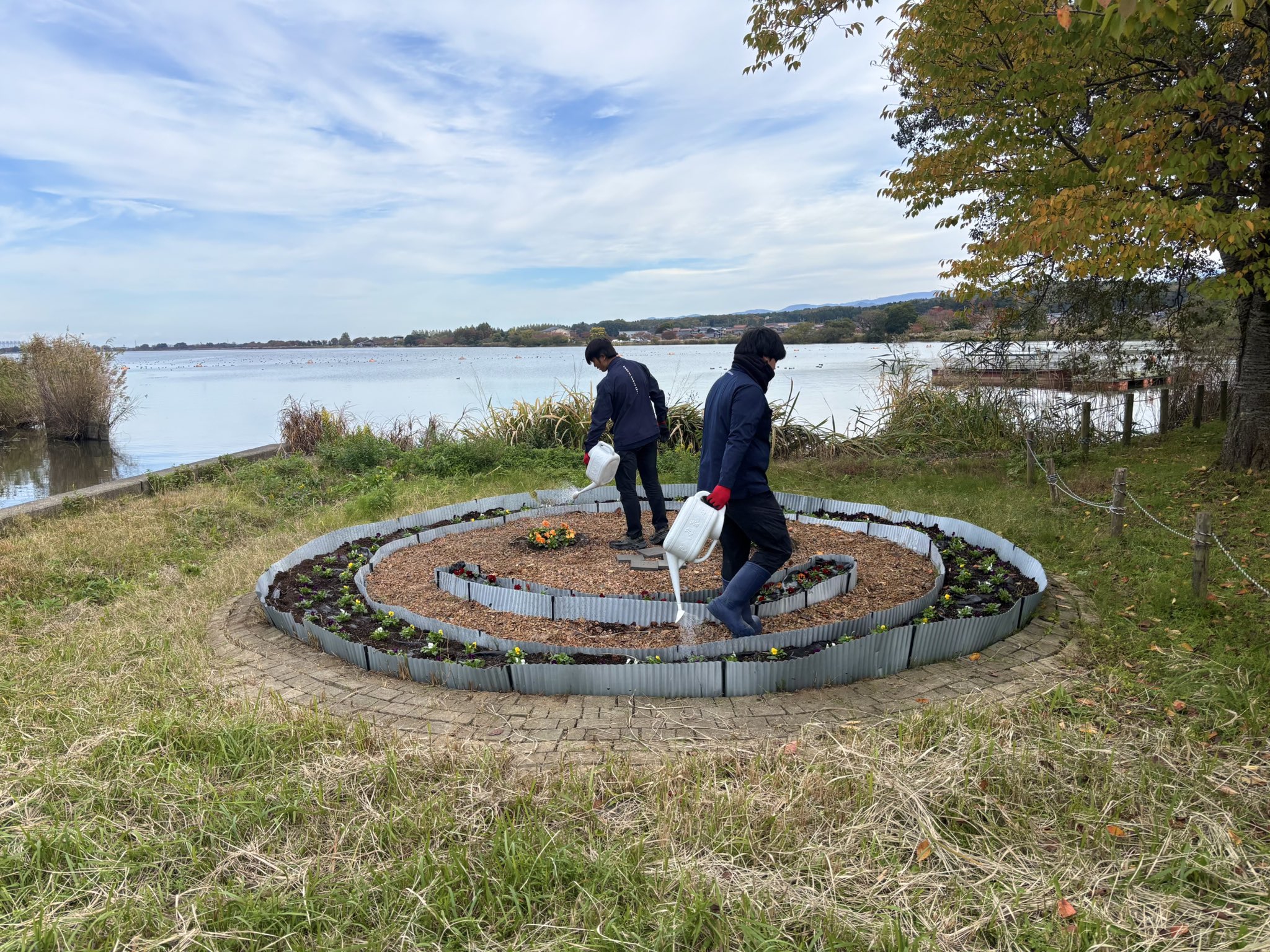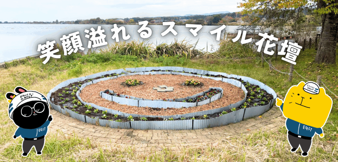 完成したスマイル花壇は色とりどりの花で元気いっぱいになりました^^