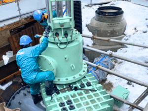 通常は断水が必要な作業ですが、「不断水分岐工」により