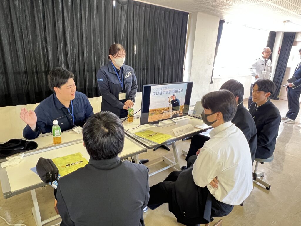 当日は、工業高校の卒業生で江口組入社2年目の社員と一緒に参加しました。