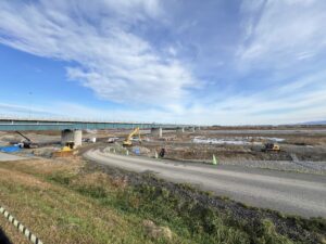 現在、江口組は手取川の現場で堤防を守るための護岸の整備を行っています。