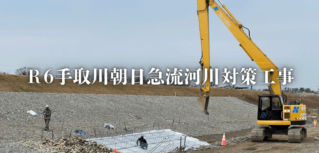 江口組では現在、「R6手取川朝日急流河川対策工事」を行っています。