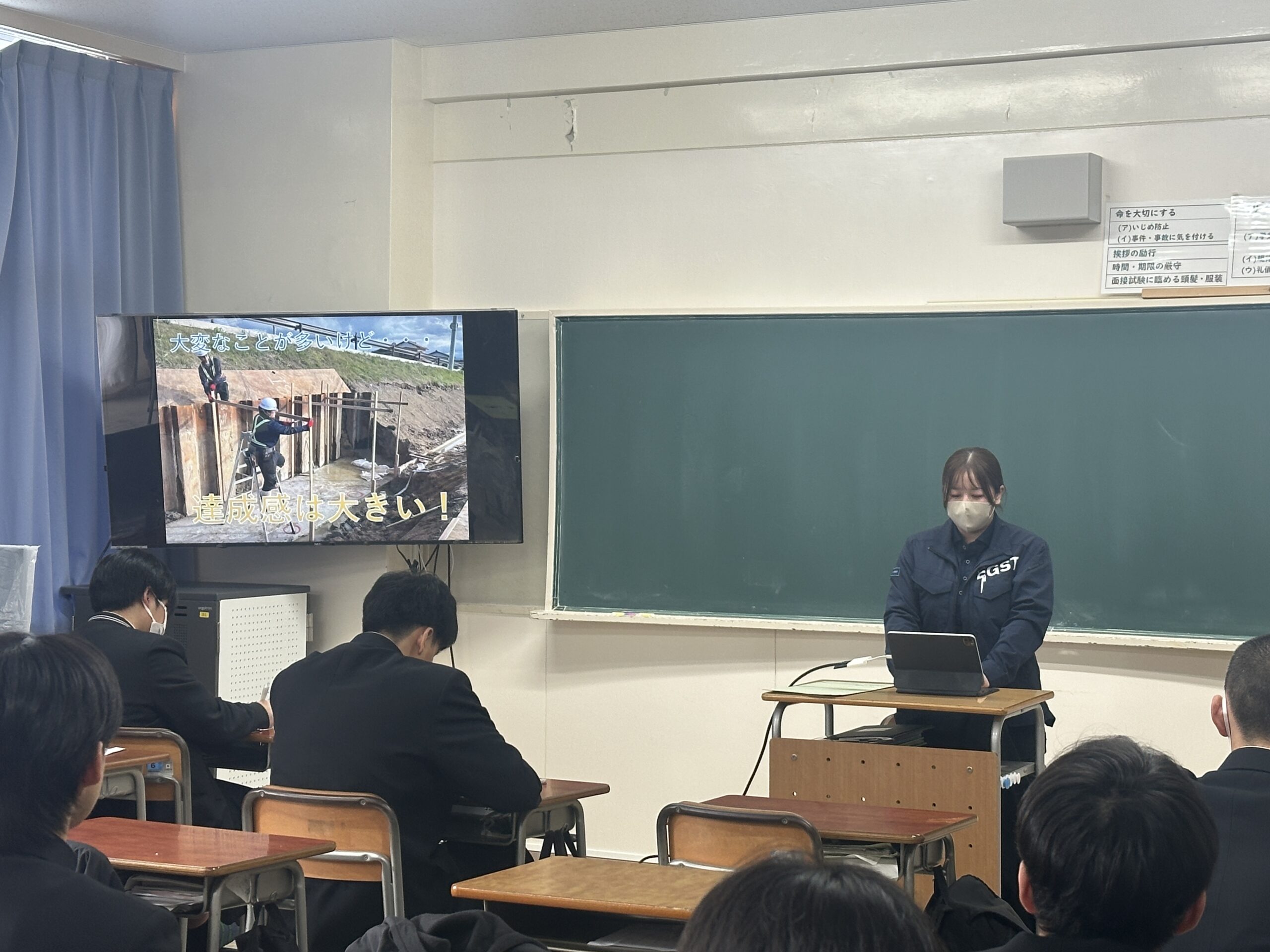 参加してくれた生徒の皆さんは、ほとんどが建設科の生徒さん。