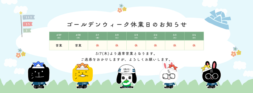 ゴールデンウィーク期間中の休業日についてお知らせいたします。
