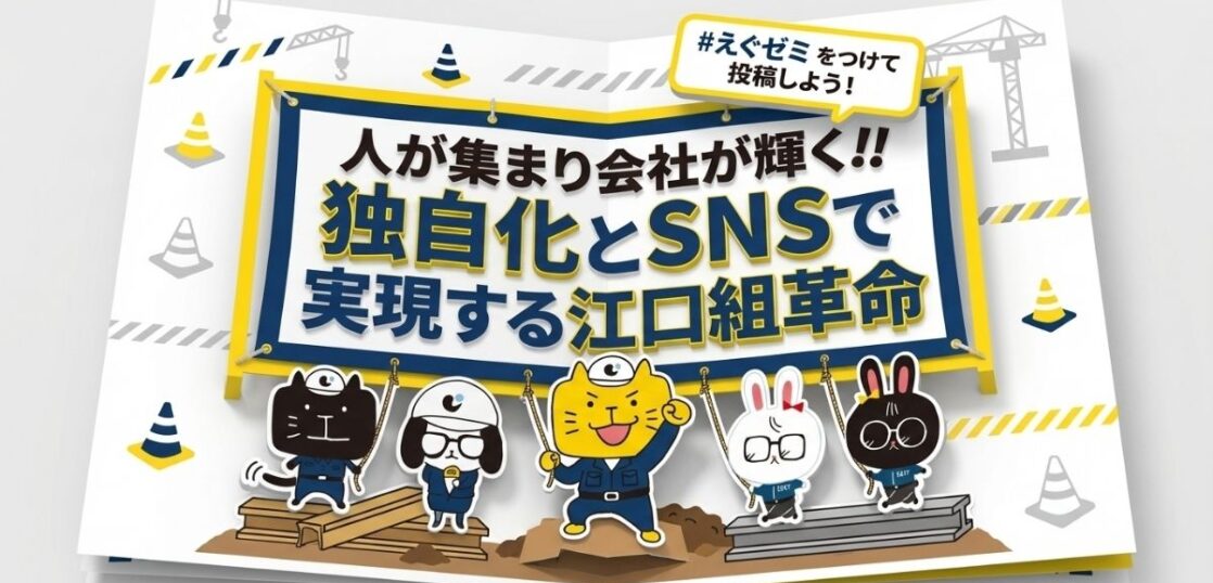 テーマはズバリ「人が集まり会社が輝く!! 独自化とSNSで実現する江口組革命」です。