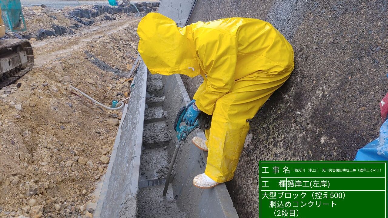 工事名 | 一級河川 滓上川 河川災害復旧助成工事(護岸工その1) |