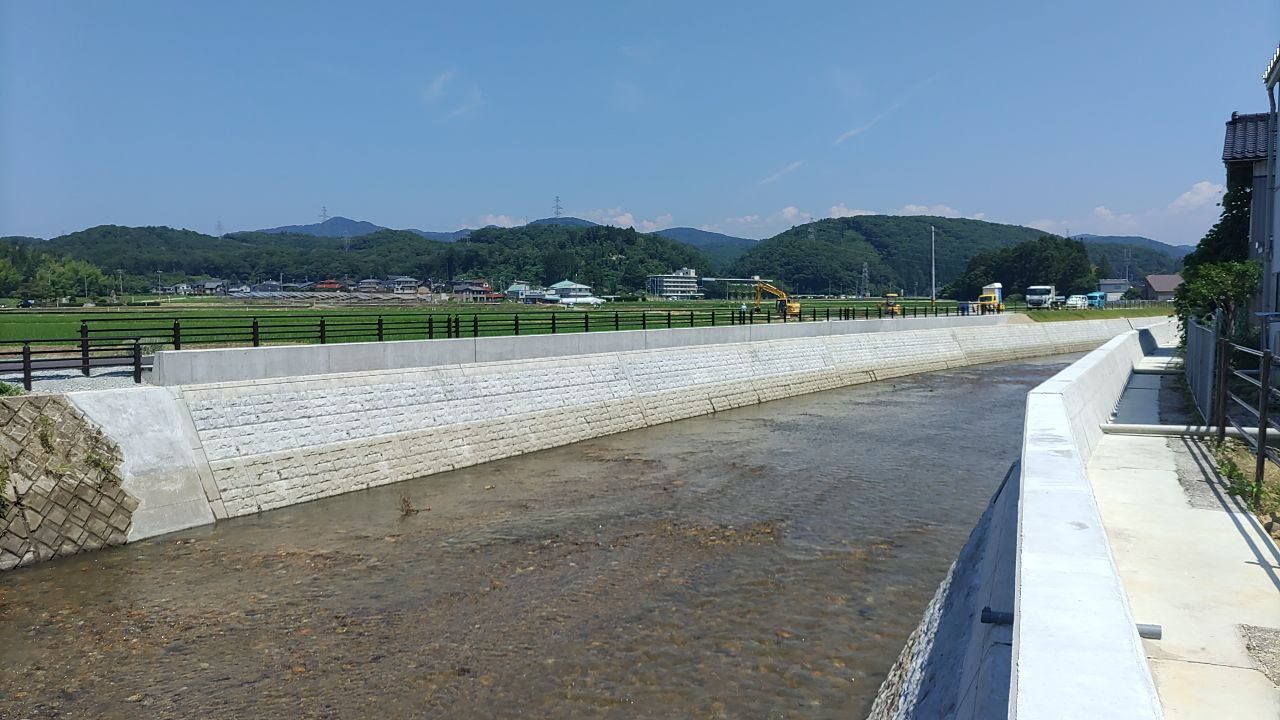 コメント | 本工事は令和4年の大雨による災害復旧工事で、旧護岸を取壊し新設及び嵩上げすることで、河川断面を広げる工事である。 |